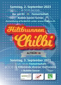 Wir laden euch herzlich zu einem aufregenden und spassigen Bubble Soccer Turnier ein, das am 2. September 2023 ab ca. 16.00 Uhr im Rahmen der Hiltbrunnen Chilbi in Altbüron stattfinden wird.